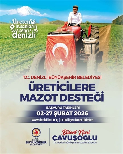 Denizli Büyükşehir Belediyesi, "Üreticilere Mazot Desteği" projesiyle üretimin sürekliliğini sağlamayı ve çiftçilerin üretim maliyetlerini düşürerek yerel ekonomiye katkı sunmayı hedefliyor. İl sınırları içerisinde ikamet eden ve üretim yapan çiftçiler, başvurularını 2 Şubat-27 Şubat 2026 tarihleri arasında yapabilecek. Başvurular, online platform veya ilçelerdeki DESKİ İlçe Hizmet Birimleri aracılığıyla kabul edilecek.