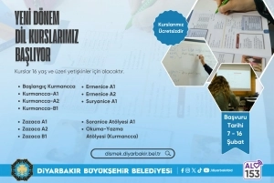 Diyarbakır Büyükşehir Belediyesi, Kurmancca, Zazaca, Ermenice, Süryanice ve Soranice kursları için 7-16 Şubat tarihleri arasında online başvuru alacak. 16 yaş üzeri yetişkinlere yönelik kurslar ücretsiz olacak.