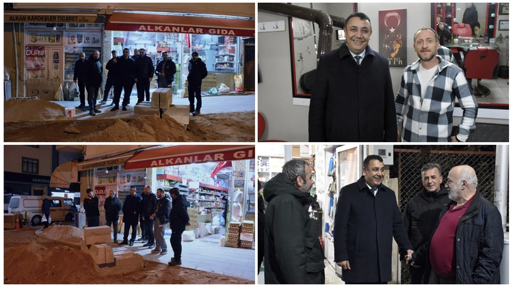 İncelemenin ardından bölgedeki esnafı ziyaret eden Belediye Başkanı, iş yerlerini gezerek çalışmaların işleyişe etkisi ve bölgenin ihtiyaçları konusunda görüş alışverişinde bulundu.