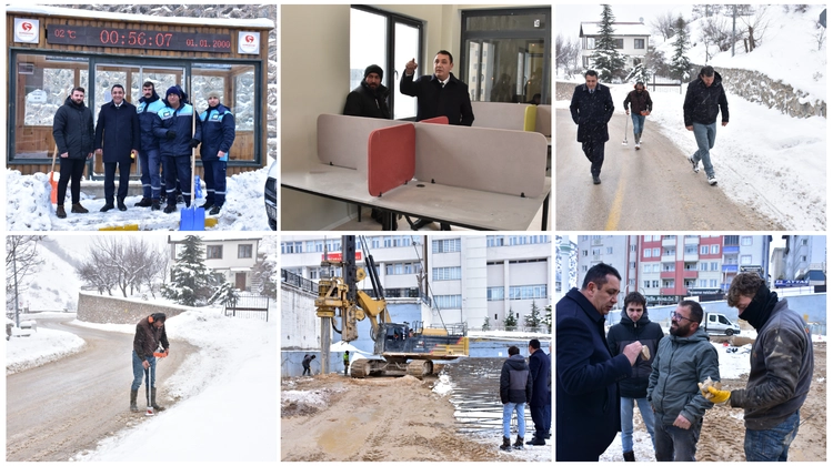 Belediye Başkanı, kar mücadelesi, çağrı merkezi operasyonları, su kaçağı tespit ekipleri ve otopark fore kazık çalışmalarını yerinde inceledi.