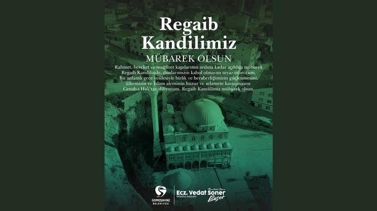 Gümüşhane Belediye Başkanı, Regaib Kandili dolayısıyla bir mesaj yayımladı. Mesajında, kandilin hayırlara vesile olmasını diledi.