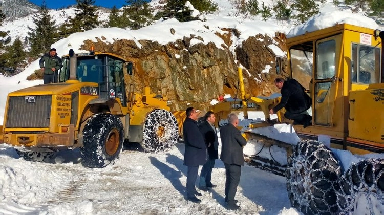 Yoğun kar yağışının etkili olduğu Özkürtün Beldesi'nde ulaşım ve yaşamı kolaylaştırmak amacıyla iş makinesi desteği verildi.