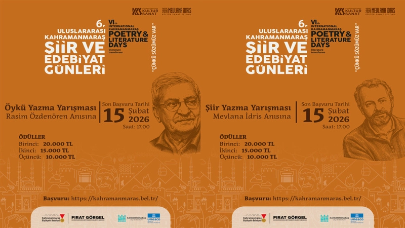 Yarışmalara başvurular 15 Şubat 2026 tarihine kadar kabul edilecek. Katılım şartları, yarışma takvimi ve başvuru formuna https://kahramanmaras.bel.tr/duyuru/2026/01/08/6-uluslararasi-kahramanmaras-siir-ve-edebiyat-gunleri-basvuru-formu internet adresinden ulaşılabiliyor.