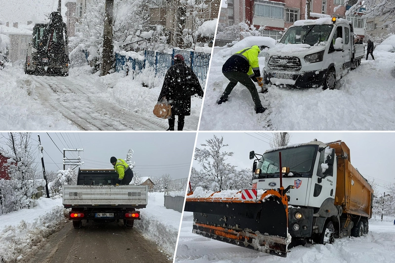 Karabük'te üç gündür etkisini sürdüren yoğun kar yağışına karşı belediye ekipleri, gece gündüz demeden sahada çalışmalarını sürdürüyor. Ana arterlerin açık tutulması için mücadele aralıksız devam ediyor.