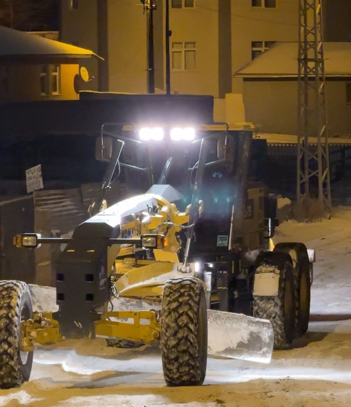 Kars Belediyesi, kent genelinde etkili olan kar yağışına karşı karla mücadele çalışmalarını aralıksız sürdürüyor.