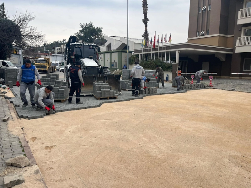 Kemer Belediyesi ekipleri, Arslanbucak ve Yeni Mahalle'de kaldırım tamiratı ile yol yapım çalışmalarını sürdürüyor.