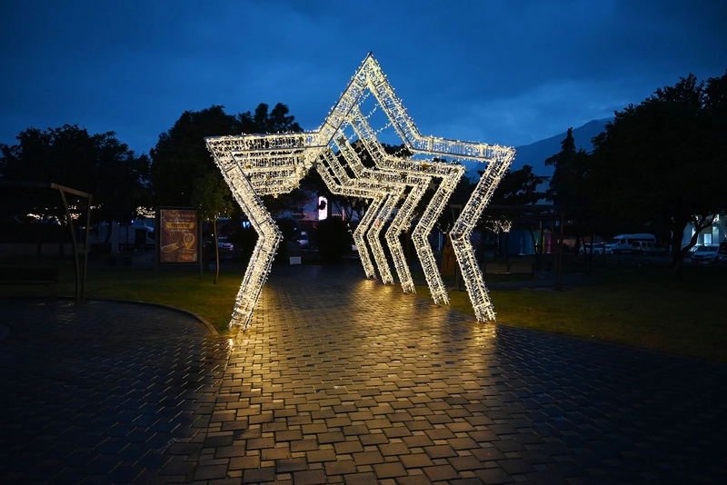 Kemer Belediyesi, Mustafa Ertuğrul Aker Parkı'nı yılbaşı için ışıl ışıl süsledi. Yerli ve yabancı ziyaretçilerin ilgi odağı olan parkta, Gastronomi Festivali ve çeşitli etkinlikler düzenlenecek.
