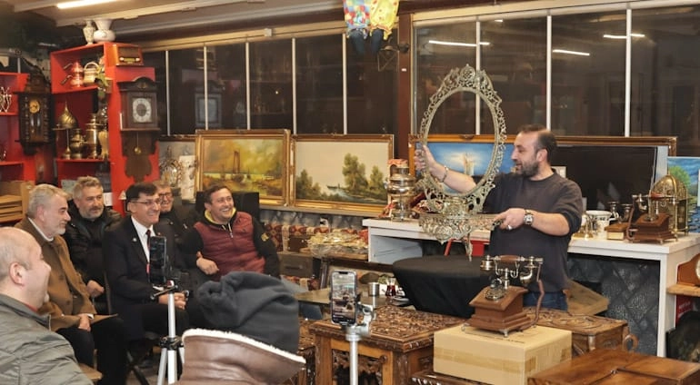 Kütahya Belediye Başkanı Eyüp Kahveci, antikacılık geleneğine katkı sunan ve koleksiyon kültürünü yaşatan önemli mekanlarda düzenlenen mezatlarda sanatseverlerle bir araya geldi.