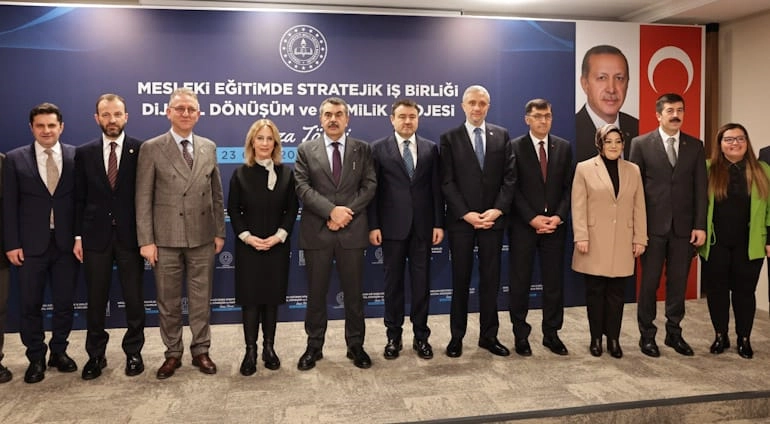 Kütahya'da, mesleki eğitimde dijital dönüşümü hedefleyen ve 80 firmayı okullarla buluşturan hamilik protokolü, Milli Eğitim Bakanı Yusuf Tekin'in katılımıyla imzalandı.