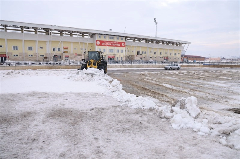 Muş Spor'un, pazar günü Muş Şehir Stadyumu'nda Menemen FK ile oynayacağı karşılaşma öncesinde, Muş Belediyesi ekipleri tarafından stadyum çevresinde kapsamlı kar temizleme çalışması gerçekleştirildi.