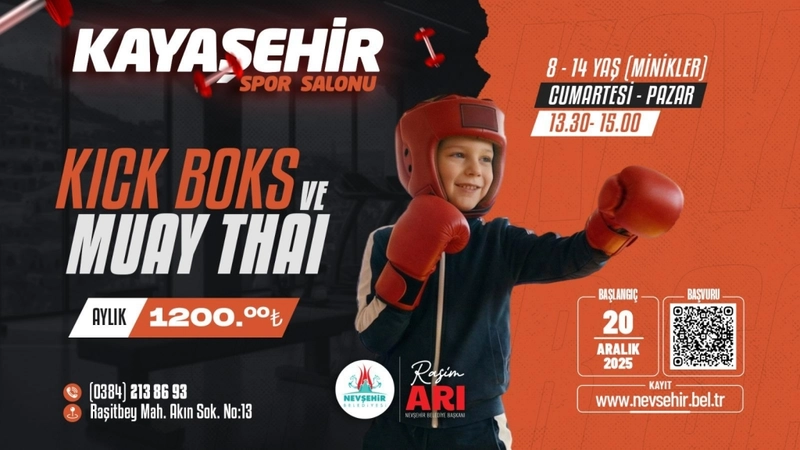 Nevşehir Belediyesi, Kayaşehir Spor Salonu'nda 8-14 yaş ve 15 yaş üstü için Kick Boks ile Muay Thai kursları düzenleyecek. Kurslar, lisanslı antrenörler eşliğinde farklı gün ve saatlerde gerçekleştirilecek.