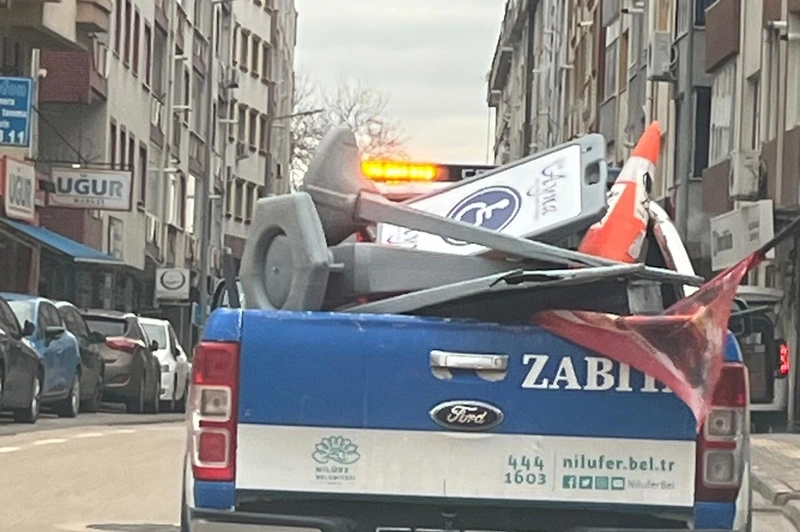 Nilüfer Belediyesi ekipleri, Esentepe ve Karaman mahalleleri ile Beşevler ve Yıldırım caddelerinde yaya geçişini engelleyen ve görüntü kirliliği yaratan duba, tabela ve reklam materyallerini topladı.