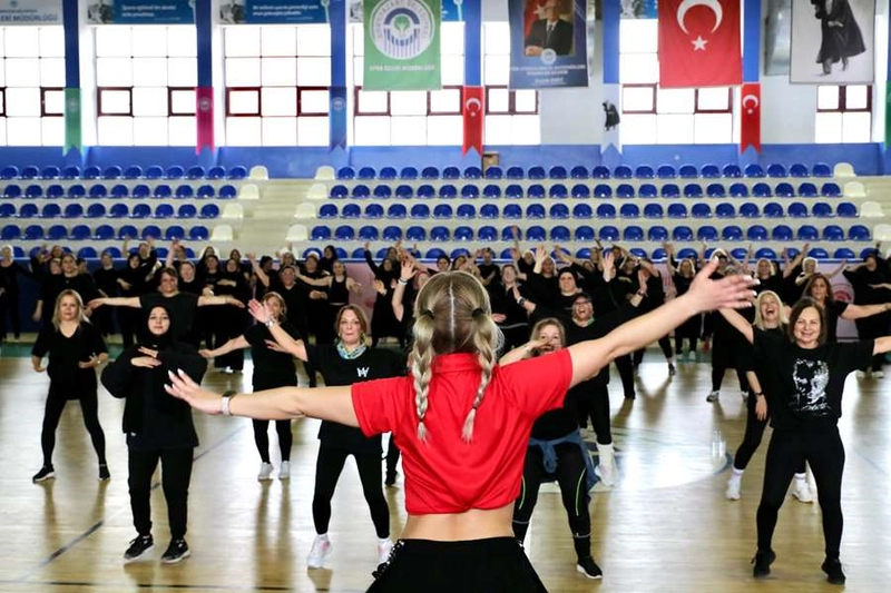 Toplam 250 kursiyerin yer aldığı etkinlikte kadınlar, dans eğitmenleri eşliğinde birbirinden renkli performanslar sergiledi. Program kapsamında doğaçlama dans, aerobik, 90'lar dansları ve zumba gösterileri gerçekleştirildi. Katılımcılar hem spor yapmanın hem de birlikte üretmenin keyfini yaşarken, etkinlik coşkulu anlara sahne oldu.