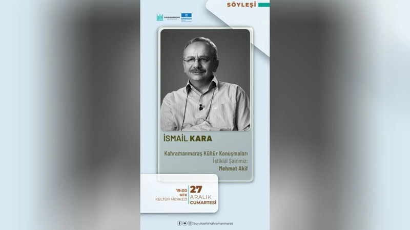 Kahramanmaraş Büyükşehir Belediyesi, 27 Aralık'ta Necip Fazıl Kısakürek Kültür Merkezi'nde 'İstiklal Şairimiz: Mehmet Akif' konulu bir söyleşi düzenleyecek. Etkinliğe Prof. Dr. İsmail Kara konuşmacı olarak katılacak.