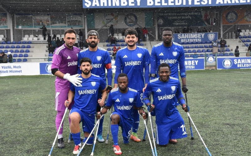 Şahinbey Belediyespor Ampute Futbol Takımı, kendi sahasında TSK Rehabilitasyon Merkezi'ni 7-0 yenerek ligdeki galibiyet serisini sürdürdü. Kulüp yetkilileri ve oyuncular, şampiyonluk hedefi için çalıştıklarını belirtti.
