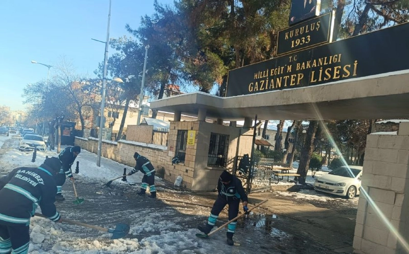 Şahinbey Belediyesi Fen İşleri ve Temizlik İşleri Müdürlüğü ekipleri, kar yağışının durmasının ardından ilçe genelindeki tüm okulların yol, kaldırım ve çevrelerinde yoğun bir temizlik çalışması yürüttü. Okul yaya yolları ile ana ulaşım güzergâhları kardan arındırılarak eğitim-öğretime hazır hale getirildi.