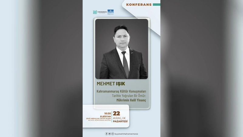 Kahramanmaraş Büyükşehir Belediyesi, 22 Aralık'ta Elbistan'da tarihçi-yazar Mehmet Işık'ın katılımıyla Mükrimin Halil Yinanç konulu bir söyleşi düzenleyecek.