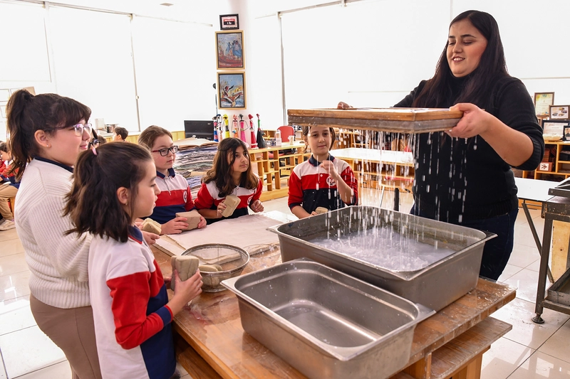 Tepebaşı Belediyesi Kağıt Geri Dönüşüm Atölyesi’nde, atık kağıtların elde geri dönüşüm yöntemiyle yeniden değerlendirilmesine devam edilirken çocuklara da çevre bilinci konusunda farkındalık yaratacak eğitimler düzenleniyor. Tepebaşı Belediyesi hizmet binasında ofislerde kullanıldıktan sonra çıkan kağıt atıkların ve başkanlığa gelen buket çiçeklerin değerlendirildiği Kağıt Geri Dönüşüm Atölyesi’nde atık kağıtlar ve kuru çiçekler bazı fiziksel işlemlerden geçirilerek önce kağıt hamuru daha sonra el yapımı kağıda dönüştürülüyor. Her yıl binlerce çocuk ve genci ağırlayan atölye 2009 yılından beri faaliyetlerini sürdürüyor. Hizmet verdiği günden bugüne 320 atölye düzenlendi, 24 bin 637 öğrenciye eğitim verildi. 2025 yılında ise düzenlenen 140 atölye ile 3 bin 180 öğrenciye ulaşıldı.