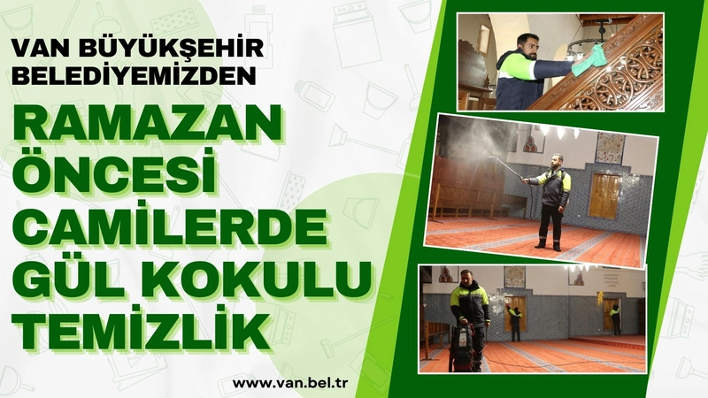 Van Büyükşehir Belediyesi, Ramazan ayı öncesinde kentteki camilerde detaylı temizlik ve dezenfeksiyon çalışması başlattı. Geleneksel gül suyu uygulamasıyla ferahlatılan camiler, vatandaşların huzurlu bir ibadet ortamına kavuşmasın